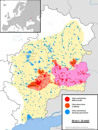 - ↑ ITAR-TASS (21 de julio de 2014). «Ukrainian troops take control of three settlements in Donetsk region» (en inglés). Archivado desde el original el 8 de agosto de 2014. Consultado el 4 de abril de 2022.