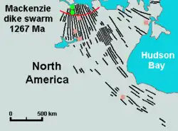 - enjambre de diques Mackenzie (Escudo Canadiense);