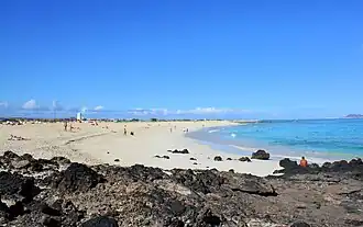 Comprende en total una longitud de 3 kilómetros y medio y gran parte de ellas se encuentran dentro del parque natural de Corralejo, un bello y excepcional paraje natural. También se las conoce como las playas de los hoteles, debido a unos hoteles que son la única construcción dentro del paraje natural, que han sido muy discutidos por su emplazamiento.