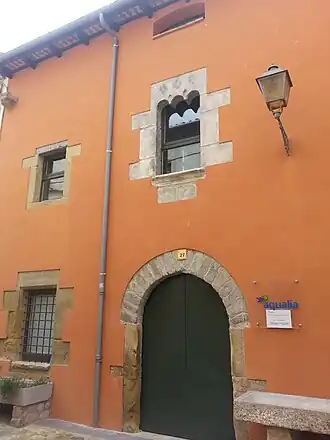 La casa del lado izquierdo de la calle de Avall está formada por dos viviendas, la del número 27 y el 29, unificadas en la fachada por el alero. Está situada entre medianeras, tiene dos plantas y desván y tejado de dos aguas con vertiente a fachada. Responde a la tipología de casa medieval.[1] Sería en este lugar, al final de la calle de Avall, conocido como "la subida de Grau", donde probablemente se situaría el portal de Santa Magdalena, es decir el segundo portal que permitiría acceder al castillo.[1]