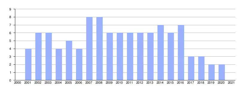 | Gráfica de evolución demográfica de Granja de Santa Inés entre 2000 y 2021 |