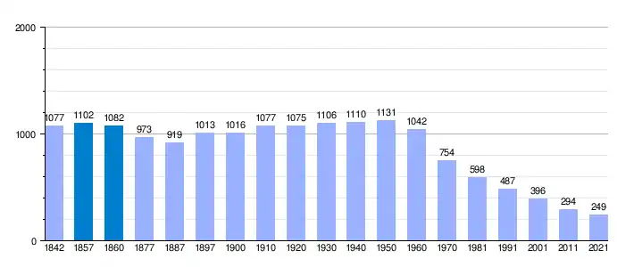 Gráfica de evolución demográfica de Grañón[4]​ entre 1842 y 2021