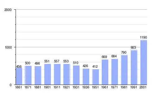 | Gráfica de evolución demográfica de Grantola entre 1861 y 2001 |