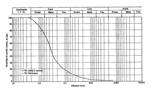 | 4 hasta 3 | 62.5–125 µm | 0.0025–0.0049 in | Very fine sand (arena muy fina) | |