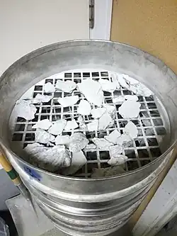 Este es el método más antiguo y todavía se usa ampliamente porque es el más económico. Consiste en medir el peso del material que pasa a través de un cedazo con una malla calibrada. Los tamices se superponen disminuyendo la malla y se mide el peso del material retenido en cada tamiz.