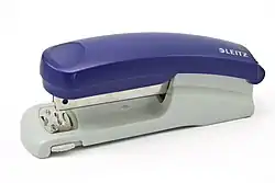 Las grapadoras se diferencian de las grapadoras de oficina, en que la mayoría de los modelos de grapadoras carecen de un yunque - la placa de metal con las ranuras curvadas que las engrapadoras de oficina utilizan para doblar las piernas de la grapa hacia adentro y las aplanan contra el papel. Staples introdujo una grapadora que conserva sus piernas rectas, y que se mantienen en su lugar solamente por la fricción estática de las piernas contra el material circundante comprimido, como los clavos comunes. De hecho, algunos modelos de grapadoras pueden manejar los clavitos y los clavos así como las grapas. Algunas grapadoras también utilizan las grapas de punto divergentes adonde las piernas se tuercen mientras la grapa se maneja hacia la superficie, para un mayor poder de sostenibilidad.