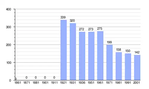 | Gráfica de evolución demográfica de Grauno entre 1861 y 2001 |