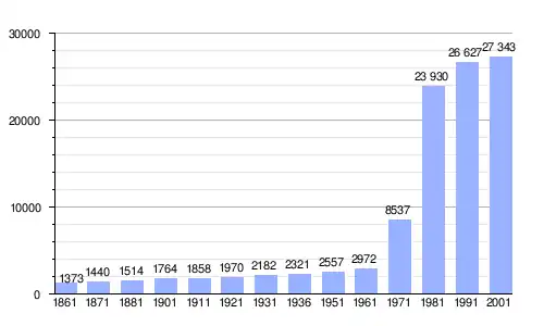 | Gráfica de evolución demográfica de Gravina di Catania entre 1861 y 2001 |