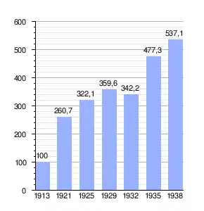 La balanza comercial fue contante e intensamente negativa durante la época: entre 1923 y 1929, las importaciones duplicaron en valor a las exportaciones, situación que no mejoró sustancialmente durante la Gran Depresión.[228] También lo fue la balanza de pagos, que únicamente equilibraron los préstamos extranjeros hasta desaparecieron como consecuencia de la Gran Depresión.[228]