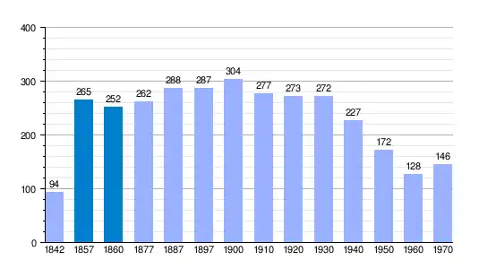 | Gráfica de evolución demográfica de Gredilla de Sedano[3] entre 1842 y 1970 |