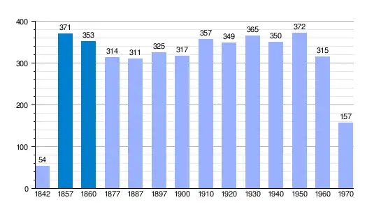 | 1842 | 1857 | 1860 | 1877 | 1887 | 1897 | 1900 | 1910 | 1920 | 1930 | 1940 | 1950 | 1960 | 1970 | |||||||||||||
