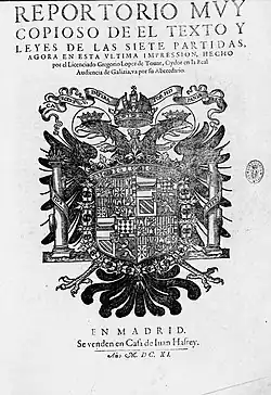 - ↑ Cfr. Rumeu de Armas, A. (1993-94) “El jurista Gregorio López, Alcalde Mayor de Guadalupe, Consejero de Indias y Editor de Las Partidas”, Anuario de Historia del derecho español, Nº 63-64, 345-450.