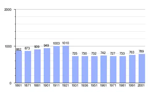 | Gráfica de evolución demográfica de Gressoney-Saint-Jean entre 1861 y 2001 |