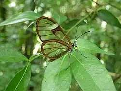 Mariposa cristal con alas desplegadas en El Crucero, Managua, Nicaragua.