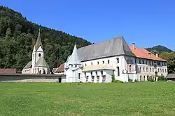 Desde aproximadamente 1233, los obispos de Bamberg hicieron que la iglesia parroquial románica de Griffen se ampliara y reconstruyera como un monasterio premonstratense. Los primeros cánones descendieron de la abadía de Vessra en el condado de Franconia de Henneberg. El complejo del monasterio se completó en 1272 y se amplió significativamente con edificios barrocos en el siglo XVII. Griffen siguió siendo la única abadía premonstratense en las tierras del interior de Austria hasta su abolición bajo el gobierno del emperador José II en 1786.