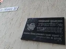 - Placa conmemorativa en una casa de la Cuesta de Andrés, Kiev.[11]