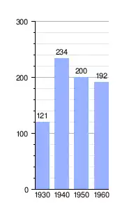 | Gráfica de evolución demográfica de Grimaldo[14] entre 1930 y 1960 |