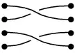 Consideremos dos conjuntos cada uno de cuatro objetos situados en una mesa. Dibujaremos los objetos de cada conjunto alineados verticalmente. Usando cuatro hebras, cada objeto del primer conjunto quedará conectado con un objeto del segundo. Llamaremos trenza a un conjunto de estas cuatro conexiones.