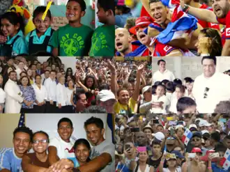 ![]() Fotomontaje de personas provenientes de la región, en orden alfabético de arriba hacia abajo y de izquierda a derecha: beliceños, costarricenses, salvadoreños, guatemaltecos, hondureños, nicaragüenses y panameños. | ||