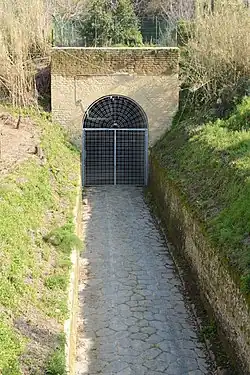 Paralelo al túnel, en el lado septentrional, se excavó un acueducto subterráneo, dotado también de pozos y cajas de decantación, con lo que se garantizaba el suministro de agua para el puerto.