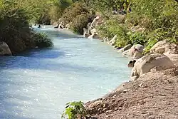 El agua de las grutas proviene de una compleja serie de canales dentro de la montaña que calienta el agua a alrededor de 20 °C.[12] Gran parte de esta agua mora en nichos en el lado rocoso de la barranca, que tiene un efecto de enfriamiento.[12] Otro factor es que el agua se mezcla con agua sin calentar, el resultado es un agua tibia en su mayoría fuera de las grutas y en el propio río.[2] Destaca por su color azul claro como consecuencia de un alto contenido de sales minerales que recoge en su paso por la montaña.[12]