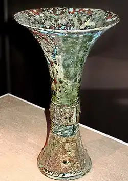 - ↑ "Gray Pottery Gu-beaker", Shandong Museum, accessed Nov. 6, 2012, http://www.sdmuseum.com/english/Collections-Pottery-29.html Archivado el 4 de marzo de 2016 en Wayback Machine..