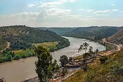 El Guadiana es un río del sudoeste de la península ibérica. Nace en la submeseta sur y sigue una dirección este-oeste hasta que, a la altura de la ciudad de Badajoz, toma rumbo sur, que mantiene hasta su desembocadura en Ayamonte (Huelva) en el océano Atlántico, donde vierte un caudal medio de 78,8 m³/s. En su curso bajo, el río, que discurre por España y Portugal, hace de frontera entre ambos países a lo largo de numerosos tramos. Se trata del cuarto río más largo de la península ibérica.