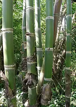 Planta rizomatosa, perenne, erecta en la base. Cañas de 6 a 20 m de altura (raramente 30 m). Su diámetro máximo es de 20 cm. Láminas foliares linear-lanceoladas.