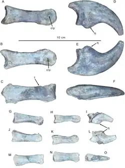- ↑ Calvo, J. O.; Porfiri, J. D.; Aranciaga Rolando, A. M.; Novas, F. E.; Dos Santos, D. D.; Wessel, D. E.; Lamanna, M. C. (2025). «Morphological and Phylogenetic Significance of the First Adult Humerus of the Patagonian Cretaceous Theropod Megaraptor namunhuaiquii Novas, 1998». Annals of Carnegie Museum 90 (3): 161-181. doi:10.2992/007.090.0301.