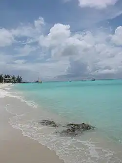 - Caicos del Este (East Caicos). Propuesta por Pieter Verhoog en 1947.[24] Pero es la única isla (entre las propuestas) que no tiene una laguna en su interior, lo cual no concuerda con las descripciones de Hernando Colón y Las Casas.