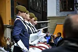 Las tradiciones militares están fuertemente conectadas con bandas y marchas militares, etc. Las bandas, con diversos músicos militares, cumplen la tarea de reemplazar a las bandas militares profesionales. En toda Suecia, hay alrededor de 32 bandas de la Guardia Nacional que suman más de 1 500 miembros, como la Banda de Södertörn de la Guardia Nacional. 17 bandas están calificadas para actuar en ceremonias estatales, visitas reales y festividades. Además de las bandas, Bandas de cornetas de la Guardia Nacional también están en servicio dentro de sus respectivas áreas, realizando tareas que antes realizaban los cuerpos de tambores y cornetas de las Fuerzas Armadas.