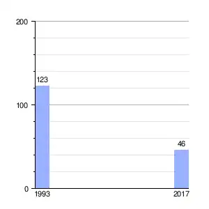 | Gráfica de evolución demográfica de Guayabo de Jililí entre 1993 y 2017 |