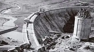El proyecto arrancó en 1929 y empleó a 400 trabajadores venidos de diferentes puntos del estado, muchos de ellos militantes de diversos sindicatos y organizaciones de izquierdas. A medida que la obra avanzaba fueron sucediéndose los accidentes y varios trabajadores murieron por deslizamientos de tierra o por voladuras incontroladas. Las protestas no se hicieron esperar y las duras huelgas para lograr condiciones de trabajo más seguras fueron un ejemplo para los obreros de los de los alrededores. Finalmente, la presa fue inaugurada por Indalecio Prieto en 1933.