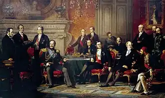 El golpe de Estado del 2 de diciembre de 1851 y la posterior creación del segundo imperio por el presidente de la república Carlos Luis Napoleón Bonaparte, que se proclamó emperador con el nombre de Napoleón III, inquietó a Europa. La toma del poder por el sobrino de Napoleón reavivó los antiguos temores de las potencias por el poderío francés y estas se prepararon para la guerra.[73][74] Para calmarlas, Napoleón aseguró que el imperio mantendría una actitud pacífica, pese a no estar satisfecho con la distribución territorial surgida del Congreso de Viena.[75]