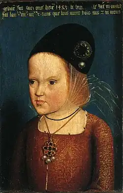 - El delfín estaba prometido a Isabel de York, compromiso que Luis deshizo en 1482, pero la situación de Inglaterra era por entonces muy diferente a la de 1477. Que Luis XI evitara cuidadosamente solicitar públicamente la mano de María parece indicar que era consciente de que el matrimonio de su hijo con esta conllevaba el riesgo de que estallase una guerra con los ingleses, puesto que suponía frustrar la boda del delfín con Isabel, que se había estipulado en el Tratado de Picquigny.[8]
