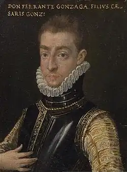 - ↑ Los Guastalla eran una rama menor de los Gonzaga que habían recibido la localidad homónima en 1539 de Carlos V, que la separó para ello del ducado de Milán formalmente dos años después.[8] El principado de Fernando Gonzaga pasó a ser ducado por decreto imperial en 1621.[8]
