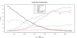 La batalla de los navegadores se libra actualmente entre los seis principales navegadores: Internet Explorer, Microsoft Edge, Mozilla Firefox, Chrome, Safari y Opera, pero especialmente entre Microsoft Edge, Mozilla Firefox y Google Chrome, que son los más usados actualmente. El más popular, Chrome, se había presentado también como un rival notable, debido a su arquitectura multiproceso, interfaz ligera, carga rápida y el hecho de que Google tiene un gran capital detrás, para hacer publicidad de su navegador en un sinfín de páginas (un ejemplo de ello sería YouTube y el buscador de Google), es posiblemente el motivo principal por el cual ha tenido tanto éxito.