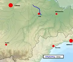 - ↑ a b L’Astesan correspond à la vallée d’Andona.