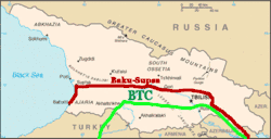 La zona del Cáucaso cobró importancia estratégica en los primeros años del siglo XXI como ruta del transporte energético, rivalizando Rusia y Estados Unidos por aumentar su influencia en la zona.[51]