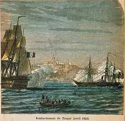 La guerra comenzó el 6 de agosto de 1844, cuando una flota francesa al mando del Príncipe de Joinville llevó a cabo un bombardeo naval en la ciudad de Tánger. El conflicto alcanzó su punto máximo el 14 de agosto de 1844 en la batalla de Isly, cerca de Oujda. Una gran fuerza marroquí dirigida por el hijo del sultán Sīdī Mohammed fue derrotada por una fuerza real francesa más pequeña bajo el mando del mariscal Bugeaud .