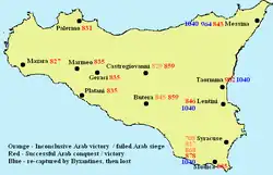 | Consecuencias | Sicilia anexionada por el Emirato de Aghlabid. Partes de Siria, Creta, Chipre, partes de Anatolia y Mesopotamia fueron recapturadas temporalmente durante la reconquista bizantina. | |||