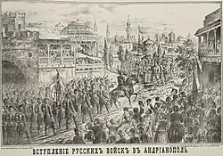 Pronto las rebeliones balcánicas empezaron a flaquear. En Europa, los periódicos se llenaron de informes sobre soldados otomanos que mataban a miles de eslavos. Incluso en Gran Bretaña, William Ewart Gladstone publicó su relato de las atrocidades otomanas en su Los horrores búlgaros y la cuestión de Oriente.[39] Pronto, una nueva guerra ruso-turca había comenzado. A pesar de luchar mejor que nunca, los avanzados ejércitos otomanos seguían sin estar a la altura de las fuerzas rusas. Esta vez no hubo ayuda del extranjero; en realidad, muchas naciones europeas apoyaron la guerra rusa, siempre que no se acercara demasiado a Estambul. Diez meses y medio después, cuando la guerra había terminado, la era de la dominación otomana sobre los Balcanes había terminado. En los Balcanes, el ejército ruso, tras cruzar el Danubio, capturó el Paso de Shipka. El ejército turco de Osmán Pashá, tras una tenaz lucha, se rindió en Plevna. A continuación, el ejército ruso cruzó los montes Balcanes, derrotó a las tropas turcas restantes y alcanzó los accesos a Constantinopla. En el Cáucaso, el ejército turco contuvo la ofensiva rusa, pero tras la derrota en Aladzha, se retiró a Erzurum, tras lo cual los rusos tomaron Kars. En el mar Negro, la flota otomana tenía una ventaja colosal, ya que la flota rusa no se recuperó tras la Guerra de Crimea. A pesar de ello, las hostilidades en el mar Negro en esta guerra no fueron importantes.