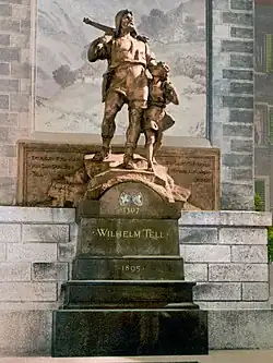 - ↑ a b «Wilhelm Tell, weltbekanntes Schweizer Symbol für Freiheit» [Guillermo Tell, el famoso símbolo suizo de la libertad]. House of Switzerland (en alemán). Das Eidgenössische Departement für auswärtige Angelegenheiten. 16 de febrero de 2022. Consultado el 27 de abril de 2025.