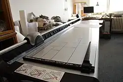 Las guillotinas para papel, fueron patentadas en 1844 y 1852 por Guillaume Massiquot. Las mismas han estado en uso desde los años 1830 cuando en 1837, Thirault construyó un modelo con una hoja de corte fijo sobre una superficie plana. Desde mediados del siglo XIX las empresas Fomm and Krause de Alemania, Furnival de Inglaterra, y Oswego and Seybold de los Estados Unidos han realizado varias mejoras en el diseño.[1]