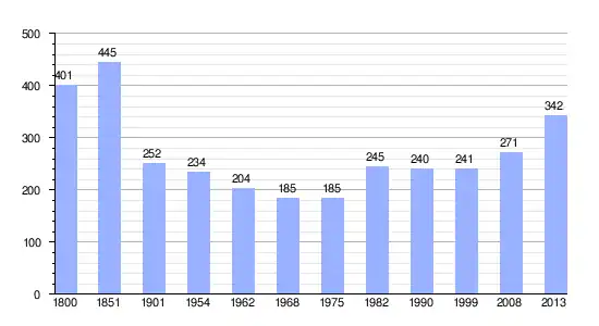 | Gráfica de evolución demográfica de Guilmécourt entre 1800 y 2013 |