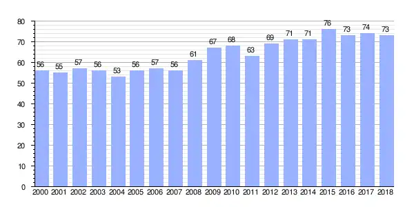 | Gráfica de evolución demográfica de Guisande entre 2000 y 2018 |