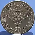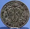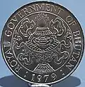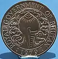 1 gultrum | 1979 | Cuproníquel | Estriado | 28,00 | 7,90 | 1 gultrum - Escudo de Bután | Jigme Singye Wangchuck - BHUTAN - འབྲུག - año de acuñación | ||