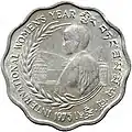 5 Chetrum | 1974-1975 | Aluminio | Liso | 22,00 | 1,50 | 5 CHETRUMS - Rueda del dharma | Jigme Singye Wangchuck - BHUTAN - འབྲུག - año de acuñación | ||