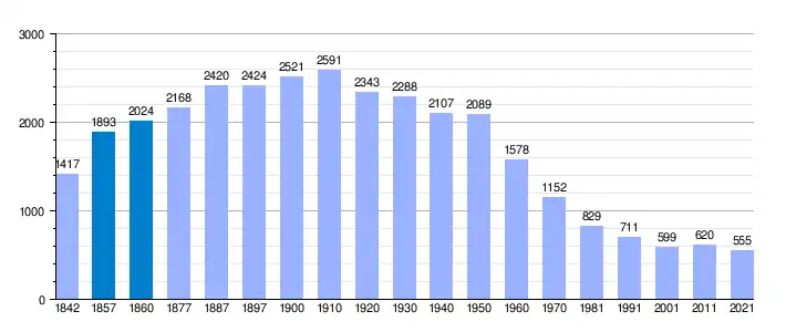 Gráfica de evolución demográfica de Gumiel de Izán[13]​ entre 1842 y 2021