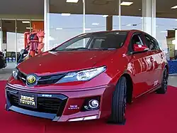 La mercancía relativa Gundam ha logrado expresarse a otros productos aparte de las figuras. En octubre del año 2013, la compañía automotriz Toyota lanzó al mercado un Toyota Auris inspirado en Char Aznable llamado Llamado Char’s Customize Auris (En la imagen). El vehículo fue presentado por primera vez en agosto de 2012 como un prototipo, pero la respuesta general del público hizo que el modelo terminara saliendo al mercado.[29] la salida al mercado de este vehículo fue ampliamente publicitada bajo el eslogan Zeonic Toyota.
